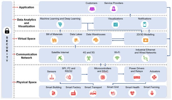 The rest of the paper is organized as follows. Section 2 elaborates on the related work and proposes an end-to-end conceptual model for digital twin. The physical space layer is presented in Section 3. Section 4 presents the communication network layer followed by virtual space layer in Section 5, the data analytics’ visualization layer is described in Section 6. Application and security layers are discussed in Section 7 collectively. Two use cases are proposed in Section 8 and followed by the conclusion in Section 8.