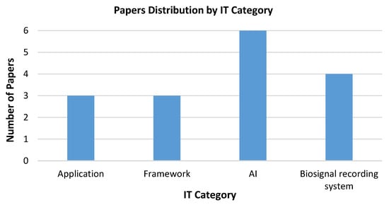 Second, the utilization of human physiological parameters and AI technology may still be further explored for developing an effective, reliable, and real-time system for combating digital addiction. The IT found in this study can be classified into four categories, i.e., application, application framework, AI, and biosignal recording system. The two most used IT in the selected studies are AI and biosignal recording system (Figure 8). The biosignal recording system has strength in recording real-time human physiological data. The real-time detection system may be used further by users to assist them in using digital technology or may be used by any specialists in the user rehabilitation effort. One consideration in developing a physiological-based detection system is how it can be implemented as a personal device that can be used practically by users at an affordable cost. Future research may explore the development of such technology. The strength of AI lies in its capability to intelligently process the input data. The intelligent system can be developed to assist users to prevent or intervene in excessive behavior of using digital technology. This intelligent system may exploit various AI technologies as its processing system. The potential capabilities of AI have also been studied and implemented in the other addiction domain, i.e., substance addiction domain. Various AI technologies have been implemented in the prevention and intervention of substance addiction [66]. One example of AI applications that help those suffering from substance addiction is Addicaid. Addicaid combines machine learning, adaptive AI, and clinical research to predict when a person may be at risk for relapse and generate treatment suggestions [67]. The other app called Triggr was developed to provide moral support during someone’s recovery. Triggr has capabilities to track how long a person has been sober and to connect him via text message or chatting apps with his recovery coaches [66]. Considering each of the advantages of biosignal recording systems and AI, future research may wish to focus on combining the strength of those IT to develop a reliable and real-time system for detecting and combating digital addiction.