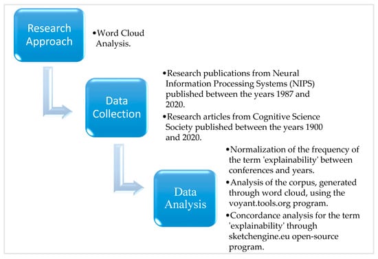 Figure 1 below is an overview of the proposed method used in the study. In the research approach, the researcher utilized word cloud analysis. Data were collected from two databases, namely Cognitive Science Society and Neural Information Processing Systems. Finally, the collected data were analyzed through normalization of the frequency of the ‘explainability’ term, Voyant analysis, and concordance analysis.