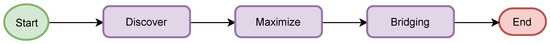 The bridging process is initiated by the central station (CS). Drones are sent to discover the isolated islands using discovery algorithms such as the Fast Neighbor Discovery Algorithm (FNDA) [28]. Drones calculate the boundary set for each neighborhood using alpha-shape algorithm.