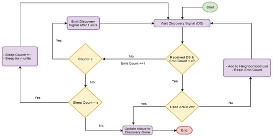 - The discovery process ends when the device does not have any more empty arcs or the sleeping counter reaches s.