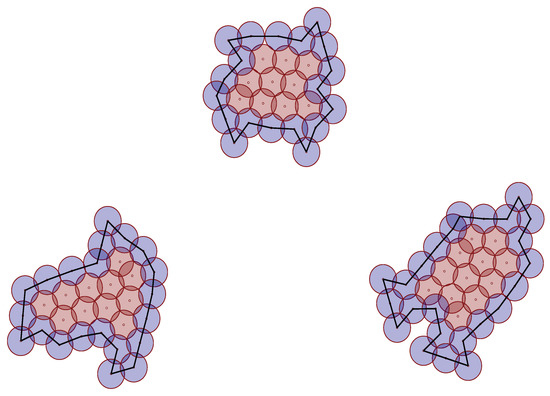 At the end of the maximization process, the network might be composed of different islands in which the coverage is maximized. Thus, we have where t is the number of islands in the network. For any two islands and , we have where (Figure 4).