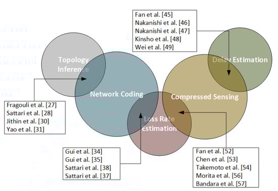 In the next subsections, we present more particular approaches exploiting network coding in tomography, centered around specific problem areas.
