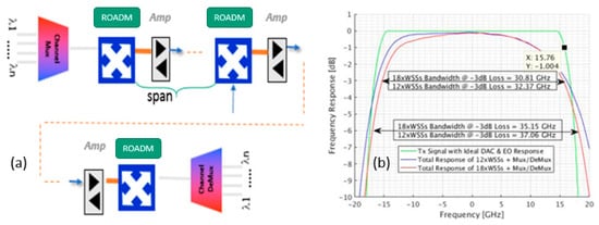 - Pan, J.; Tibuleac, S. Real-time ROADM Filtering Penalty Characterization and Generalized Pre-compensation for Flexible Grid Networks. IEEE Photonics J. 2017, 9, 1. [Google Scholar]