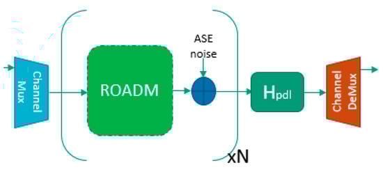 Simulated channel model with ROADM concatenation, noise and PDL.