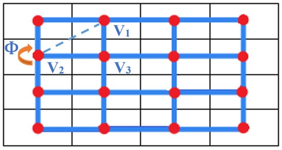 The power consumption is affected by the turn rate [32]. How many turns are needed during the whole flight mission is a main concern. Assume that the drone is coming from vertex to and is going to make a turn at to head later to (see Figure 9). The turning angle is computed as follows [14]: