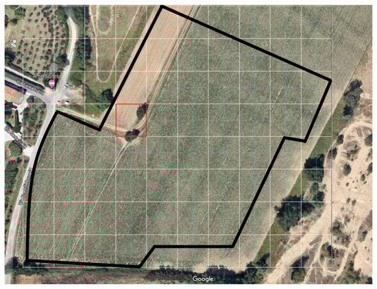Figure 20. Scenario 2: Area of Interest [31].Figure 21a shows a Google Maps 3D view of the cell containing the obstacles. It has two trees of height max 4 m. Figure 21b shows the Google Maps street view image for the facing area. We compared our work to [31], in which the drone flies at height of 10 m. We assume that the UAV speed varies between 4 and 14 m/s and UAV rotation rate varies between 10 and 60 degree/s.