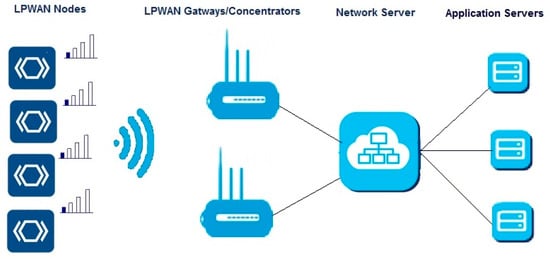 30]. To enhance energy efficiency, end nodes communicate with the gateway with a narrow spectrum and at low power [