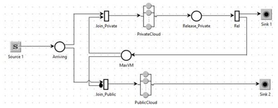 Multi-formalism is a solid approach meant to augment the modeling capability of complex systems. Both case studies presented in Section 4 can be compared to different techniques used to model dynamic provisioning and e-Health scenarios discussed, although it has be noted that both consider one single formalism, reducing in this way the degree of freedom of the modeler in choosing the most suitable formalism to model a specific aspect of a problem. In [], the authors deployed a hybrid model consisting of an M/M/c model and multiple M/M/1 models to provision computing resources within a virtualized application, while El Kafhali and Salah [] presented a modeling architecture composed of an M/M/1/B queue for each fog node with identical service time, a M/M/C queue with infinite waiting buffer, and a M/M/c/K queue characterizing each private node in the private cloud datacenter.