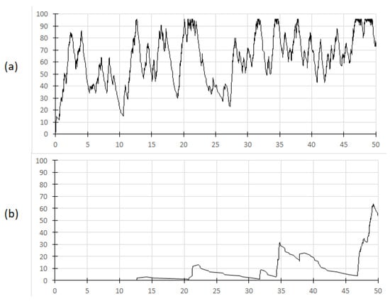 With respect to the study of computing infrastructures workload in general (including the identification of patterns), Calzarossa et al. [] presented an interesting survey on the subject. Workload remains a key indicator to correctly match the Quality of Service (QoS) and Quality of Experience (QoE) and to adequately respond to energy saving policies and resource provisioning requests. The capacity of performing passive or active data collection (by storing data with logging capacities or by deploying ad hoc tools) from an application generates a volume of data that can be exploited for monitoring purposes. However, such tasks imply a risk, since collecting big volumes of data can add a significant workload to the system, which can be mitigated by choosing appropriate sampling techniques, assuming that the sample is correctly selected (this and other issues are discussed in []. The work in [] reviews the main techniques used to analyze the system performance, ranging from statistical analysis to the usage of graphs and stochastic processes.