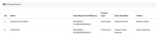 - Due to multiple machine-learning-based methods, the detection will be more accurate and the threat reporting and sharing (along with scanning result, Exif information, Permissions Ranks and a nicely Decompiled Source Code of the submitted sample ready to download, all in one place) will be fast.