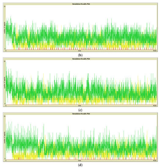 To get answers for hypothesis 3 (which states that the quality enforcement mechanism would enhance user experience), we compare the results of strategies in column 1 with those in column 2 of Figure 4, correspondingly. For example, to compare Good Visits with and without the enforcement of quality, we consider Figure 4a—representing results for Good Visits without centralized enforcement—and Figure 4b—representing results for Good Visits with centralized quality control. It is clear from the results that quality enforcement increased the number of Good Visits, while it decreased Bad Visits and No Visits. This response is true for all the strategies used in this work, and the results are provided in Figure 4. The comparison of results presented in Figure 7a–d in the form of time series data for corresponding strategies also confirms the fact. Therefore, simulation results validated hypothesis 3 in its current form.