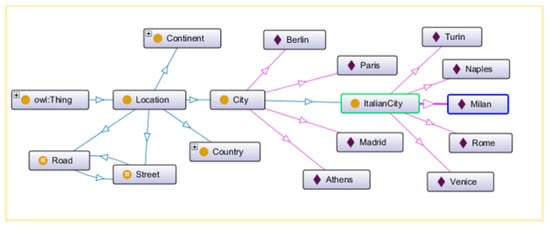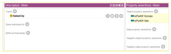 The implementation of the engine aims at enhancing the core functionalities offered by ElasticSearch towards two directions: both the discovery and the ranking. It is developed on one hand to extend the search results, capturing semantic relations between different terms, and on the other to revise the ElasticSearch default scoring algorithm, used to rank those results. Regarding the discovery aspect, ElasticSearch is capable of handling synonyms during the analysis process. Furthermore, the engine takes full advantage of ontologies to also handle two more types of semantic relation. More precisely, in case the requested term is a class, then the following relation types are considered: Equivalent (for exact or synonym terms), SuperClass/SubClass, and Sibling. In case the requested term is an individual, then the corresponding types are: same (for exact or synonym terms), property (for individuals with property relation where the requested term is the subject), and siblings (for individuals that belong to the same classes). For example, if a doctor is searching for medical data about patients from Milan, the engine returns Blueprints that provide such data not only from Milan, but also from Italy, since Milan isPartOf Italy (property relation between individuals Milan and Italy), as well as from Rome, since both of the individuals Milan and Rome belong to the same class ItalianCity (Figure 4 and Figure 5, respectively).