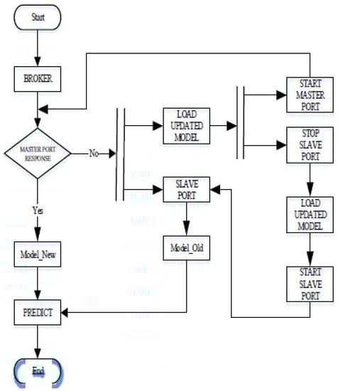 Furthermore, as seen from Figure 6, the prediction delay only observes a slight increase, about 24.2 ms in the whole switching process. Based on master–slave design, the model upgrade process has little effect on the prediction delay, which is the overhead of the service status checking. This service query is rather fast. This design allows for the smoothness and high efficiency of the model switching process.