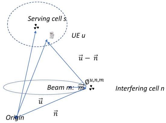 and are the location vectors of the user and the cell, is the direction vector of the beam boresight, shown in Figure 2 [29].