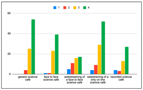 Figure 5. Approval of the various modalities of science Café from 1 (not good) to 4 (optimum).