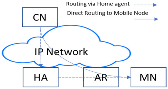 - Hamad, H.; Abudalfa, S.; Sahmoud, S. Adaptive mobility management scheme for Mobile IP using ad hoc networks. Int. Arab J. Inf. Technol. 2011, 2, 65–71. [Google Scholar]