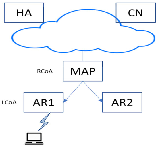 - Soliman, H.; Castelluccia, C.; El Malki, K.; Bellier, L. Hierarchical Mobile IPv6 Mobility Management (HMIPv6); RFC 4140; IETF: Fremont, CA, USA, 2005; Available online: https://tools.ietf.org/html/rfc4140 (accessed on 10 July 2020).