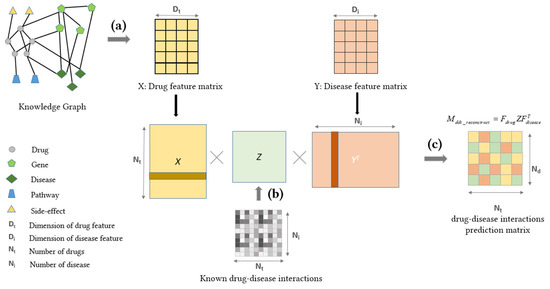 The method based on the knowledge graph embedding (KGE) maps the entities and relationships in the knowledge graph to a low-dimensional continuous vector space, which can retain the inherent characteristics of the knowledge graph and alleviate the feature sparse problem that may be faced in the application of the knowledge graph. The training process is divided into multiple stages. First, the KGE model uses random noise to initialize the embedding vector. Then, the loss error is calculated by the score function, and training is performed. GrEDeL [19] uses TransE to learn the embedding vector based on a biomedical knowledge graph by exploiting the relations extracted from biomedical abstracts. Then, the Long Short-Term Memory (LSTM) Networks model is trained to discover candidate drugs for diseases of interest from biomedical literature. TriModel [20] is an extension of DistMultand and ComplEx models, using three embedding vectors to represent each entity and relationship. These methods have high requirements on the quality of knowledge graphs and are suitable for finding new associations between drugs and targets that have been fully studied; however, they are not suitable for drug repositioning for emerging diseases due to incomplete disease-related information in the knowledge graph.