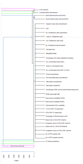 It is also possible to evaluate the similarity degree between the two dendrograms by computing the so-called entanglement parameter—ranging from 0, which accounts for no entanglement—to 1—which accounts for full entanglement. A low entanglement score implies a good alignment degree between the QoS performance of the two technologies with respect to the time period and set of users observed. In the considered case, the entanglement parameter is evaluated to be equal to 0.175, thus allowing us to consider as ABT a reduced dataset extracted from the original one X. In particular, the Repeated ticket variable occupies very similar positions in both dendrograms. In light of this, it is reasonable to adopt the same predictive algorithm to predict ticket reopening for both VULA and SLU technologies.