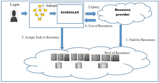 - Workflow submission: In order to schedule the workflow tasks, the workflow application is submitted to the workflow management system (WMS) by the user. The host machine, such as users’ laptops or a public resource, can hold the WMS.
