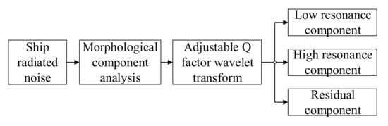 Morphological component analysis is usually used to decompose signals with different morphological characteristics []. The ship radiated noise with oscillating and non-oscillating component has different morphological characteristics. So, the MCA algorithm can be used to separate and extract the ship radiated noise to construct the optimal sparse representation for its high-resonance and low-resonance component.