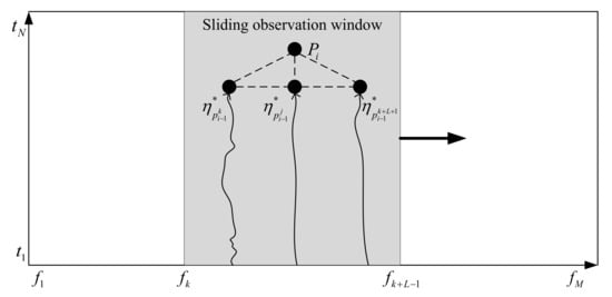 In this section, a sliding window line spectrum extraction algorithm based on multi-step decision is used to search for the optimal path. As shown in Figure 5, in this algorithm, a window which can slide along the frequency axis and cover the whole time axis is set in the LOFAR spectrum. We search the optimal path in this window. The reason for setting the window is that there may be multiple line spectrum co-existing in the LOFAR spectrum. By properly setting the size of the window, the search range of the path can be limited to a certain region of the LOFAR spectrum. Then the line spectrum in each window can be extracted, which can avoid that only the strongest spectral line is extracted in the whole LOFAR spectrum.