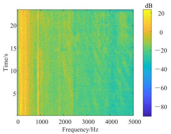 The line spectrum has been widely used in the field of passive sonar ship target recognition because of its significant sound source information and relatively high signal-to-noise ratio. The Low-Frequency Analysis Representation (LOFAR) spectrum transforms the signal received by the passive sonar from time domain to time-frequency domain using the short-time Fourier transform (STFT), which can reflect the signal in the two dimensions of time domain and frequency domain. Scientists observe the line spectrum in the LOFAR spectrum to determine the presence or absence of the target, and perform tracking and recognition []. Because there is more demand of the stealth technology of the ship and the radiated noise of the ship’s target is greatly reduced, the signal-to-noise ratio of the ship radiated noise received by the hydrophone array is also decreasing. The line spectrum components become more difficult to identify. There are many research results on automatic detection and extraction of line spectrum under low signal-to-noise ratio.