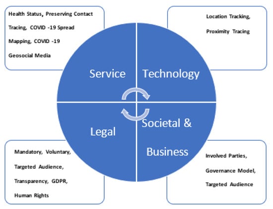 Ongoing research also studies the legal aspects that influence the functionalities and services that can be utilized by mobile users. The data that are also gathered by the developers are also a part of this category of aspects which usually are utilized for research purposes, but in many countries, they are an additional digital tool to monitor the spread of COVID-19 [].