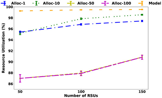 It is worth mentioning that the increased number of controllers does not necessarily related to an increase in wasted resources as evidenced by the result presented by the model for 150 RSUs, where there was a reduction in the number of controllers compared to the experiment with 100 RSUs. This behavior is the result of the number of templates providing different capacities to the controllers as shown in Figure 7.