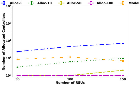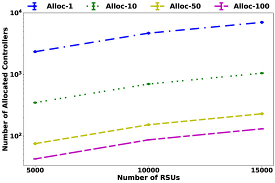 Numbers of allocated controllers in high-density scenario.