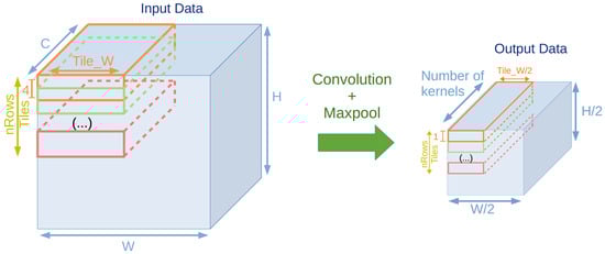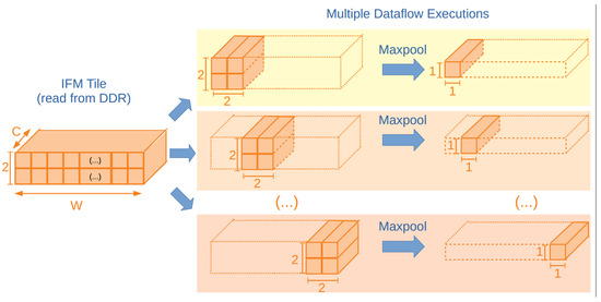 The maxpool layers 10 and 12 are accelerated in isolation. Figure 8 presents a diagram for the input and output tiles used in each configured dataflow.
