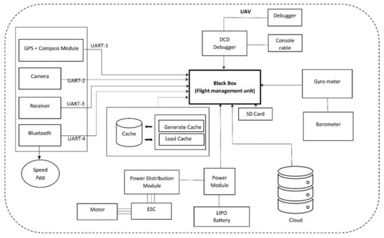It is the main component of the flight controller as it calculates the roll, yaw, and pitch and keeps the balance of the UAVs, and keeps it steady. Additionally, it has some onboard memory for storing and modifying purposes. The gyro meter keeps checking the angle of the inclination of the drone as well as the pitch and roll to prevent any failure and make sure the drone completes its task safely. It also feeds in the angle to Blackbox to track the path during the descent and ascent of the journey.