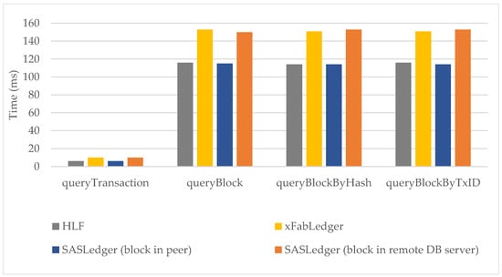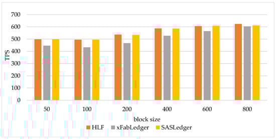 Figure 8 indicates that the total block commitment latency of xFabLedger with each block size is the highest among the three blockchain systems and the commitment latencies of HLF and SASLedger are similar. This observation can explain the result shown in Figure 7.
