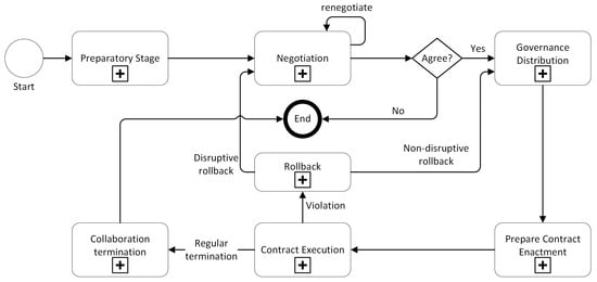- Norta, A.; Kutvonen, L. A cloud hub for brokering business processes as a service: A “rendezvous” platform that supports semi-automated background checked partner discovery for cross-enterprise collaboration. In Proceedings of the 2012 Annual SRII Global Conference, San Jose, CA, USA, 24–27 July 2012; pp. 293–302. [Google Scholar]