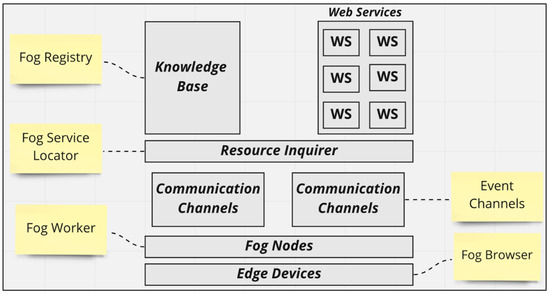 In our proposed framework, the FW is the component that manages the fog and edge strata. It is the coordinator between end consumers and the fog network. The FSL component is the resource inquirer, which decides whether requests can be fulfilled from available fog nodes or not. The FR is the knowledge base that stores data regarding available fog nodes in the network and the available services. The event channel is the communication channel between the FR and the fog nodes. Figure 4 shows the high-level architecture of the proposed framework.