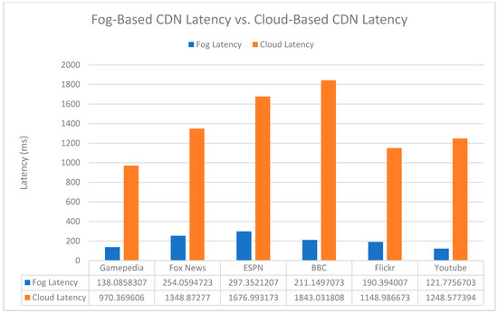 Fog-based CDN latency vs. cloud-based CDN latency.