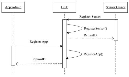 The registration phase consists of providing participants a unique identifier ID and the tools that are needed to join the consortium network. The trusted admins manually register the different entities to answer the trust and credibility of the identity solution. An entity sends a request for registration; in a moment of receiving the query, the DLT platform runs the registration function that contains three main steps, checking the existence of the registered entity, assigning a unique ID, communicate the ID to the requester, as shown in Figure 3.
