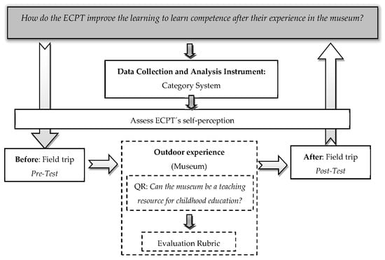 Figure 1 synthetically presents the study. The research question is as follows: How do the ECPT improve the learning to learn competence after their experience in the museum? To approach this question, we designed a category system-like data collection and analysis instrument based on the European Commission about the learning to learn competence [].