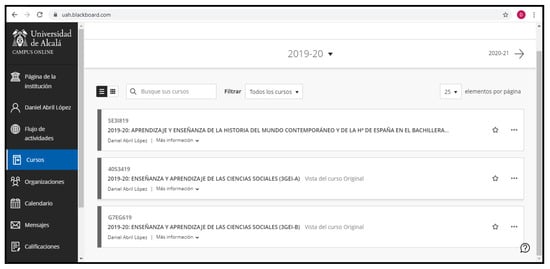 Afterwards, the general characteristics of the teaching experience were explained, including the e/m-learning tools (Blackboard Learn and websites) and information related to the museum of Guadalajara [,,].