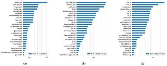 In order to carry out the structural-based analysis, few preprocessing steps were introduced on the COVID dataset. First of all, comments having a deleted author were maintained in the dataset: in fact, in some cases the text content of a comment remains available even if the author deactivates her/his account. Moreover, in order to extract URLs present in comments we applied classic regular expressions. Additionally, comments from bots duplicating URLs (such as VideoLinkBot (https://www.reddit.com/user/VideoLinkBot)) were ignored, thus avoiding counting a URL more than once. Then, for each megathread m we focused on the comments belonging to m which were made in the same day (week in the case of /r/thenetherlands) of submission in the megathread. Finally, in order to carry out the structural analyses, we focused on the number of submissions, the number of comments and the corresponding scores.