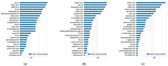 - Gozzi, N.; Tizzani, M.; Starnini, M.; Ciulla, F.; Paolotti, D.; Panisson, A.; Perra, N. Collective response to the media coverage of COVID-19 Pandemic on Reddit and Wikipedia. arXiv 2020, arXiv:2006.06446. [Google Scholar]
