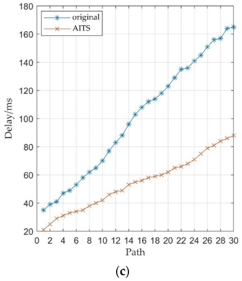 Performance comparison of AITS and original algorithm under different network scales. (a) in a simple network, (b) in a complex network, (c) in a large-scale network.