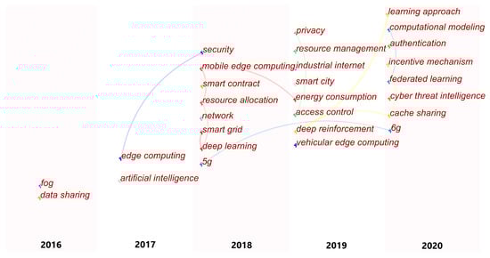 Keywords could be a strong tool to classify different topics related to blockchain-enabled edge intelligence. In this subsection, we use CiteSpace [22], a data mining tool empowered by ML algorithms, to classify hot topics for readers. The purpose of this data mining is to offer an intuitive vision of this research area.
