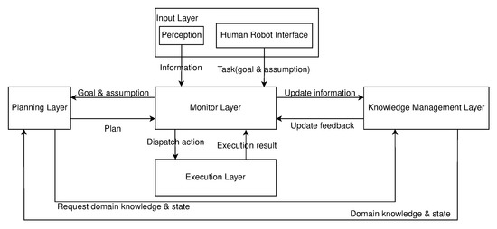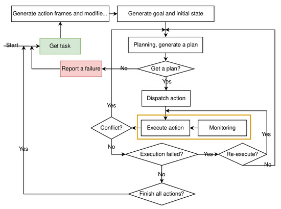40], a semantic knowledge base is proposed to derive and check implicit information about the effects of actions during plan generation. In this paper, a classic “plan-execute-monitor-replan” is used to handle unexpected changes in the open world.
