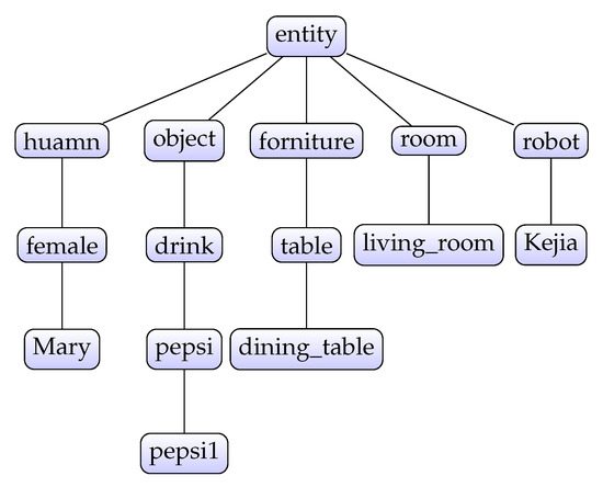 https://athome.robocup.org (accessed on 12 February 2021). The user verbally assigns a complicated task to the robot that may require a set of skills. The robot needs to perform the task, report any problems, adapt to unexpected changes, and find alternative solutions with brief knowledge about the domain. Automated planning, which makes decisions about how to act in the world, requires symbolic representations of the robot’s environment and the actions the robot can perform, has been widely used for task planning and control in many service robot applications. In the open world, there are two main challenges for task planning: (1) the robot’s perception of the world is often incomplete, a command may refer to an object that is not in its knowledge base, lack of information will fail to generate a plan; (2) changes in the dynamic environment may not be expected by the robot, which will cause the planned action to fail.