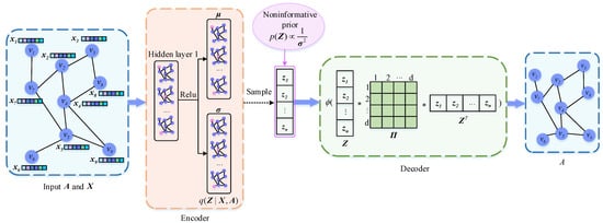 20] based interpretable variational graph autoencoder called NPIVGAE, which utilizes the noninformative prior distribution as the prior of the latent variables. Such a prior is more reasonable, especially when we lack prior knowledge. It no longer forces the posterior distribution to tend to the standard normal distribution, so that almost all the posterior distribution parameters are learned from the sample data. In addition, we leverage a new perspective to understand the node representations to improve the interpretability of the model. Specifically, each dimension of the latent variables is regarded as the soft assignment probability that the node belongs to each community (also called block in the stochastic blockmodel). Meanwhile, the correlation within and between the blocks to which the nodes belong is described by a block–block correlation matrix. When reconstructing the link between two nodes in the graph, the representations of these two nodes and the correlation between the blocks to which two nodes belong are taken into account.