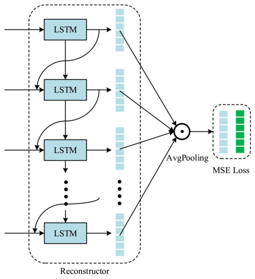 where is the output of LSTM at i-th time step, is an average pooling process, and represents the reconstructed semantic vector. The reconstruction loss is measured by Mean Square Error (MSE) loss:
