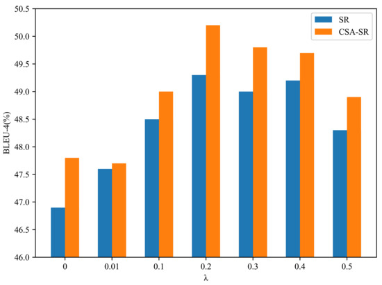 BLEU-4 effects of parameter in semantic reconstructor. CSA-SR denotes the complete model based on channel soft attention and semantic reconstructor, and SR is a simplified CSA-SR which without channel soft attention.