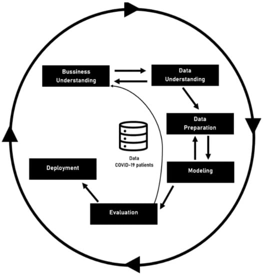Since this is a research project and, to understand if it is possible to characterize the clinical typology of patients infected with Coronavirus (as well as the outcome of the disease), two methodologies were followed: Design Science Research (DSR) as a research methodology, and Cross-Industry Standard Process for Data Mining (CRISP-DM). DSR consists of 6 phases: 1. Identifying the problem and motivation; 2. Defining objectives of the solution; 3. Design and development; 4. Demonstration; 5. Evaluation; 6. Communication. These phases provide guidelines for evaluation and interaction in research projects. To put DSR in action, it is necessary to use a practical methodology to help drive the project, so, Cross-Industry Standard Process for Data Mining was chosen [].